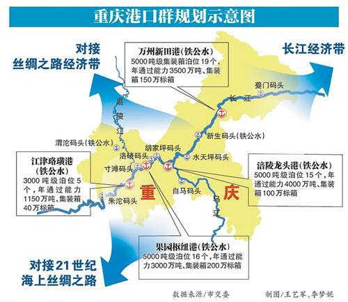 首先,按照城市发展新区既要发挥联动主城综合枢纽,又要直接参与长江“黄金水道”、渝新欧“丝绸之路”物流服务的定位,统筹规划建设立体交通体系,打牢物流联运硬件基础。同时统筹枢纽和干道建设,以江津珞璜、涪陵龙头枢纽港、合川渭沱重点港为水运交通三角支点,形成“点-线-片”带动港口功能互补,并主动连接团结村、果园综合枢纽港和周边省市及城市发展新区之间的多式联运交通。