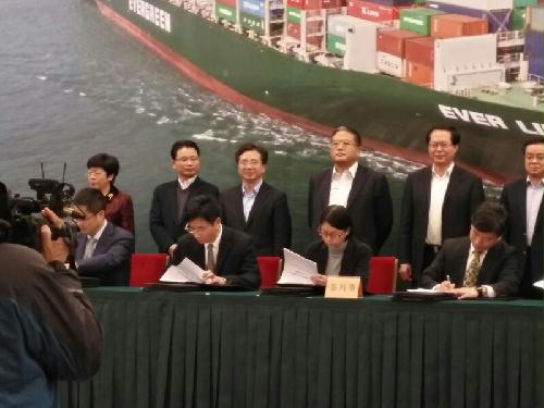 浙江省交通运输厅 12月28日上午,浙江省政府在杭州举行舟山江海联动服务中心推进会暨重大项目签约仪式。省委副书记、代省长车俊出席会议并见证签约仪式。副省长、省海港委主任高兴夫讲话,中国远洋海运集团副总经理叶伟龙,省政府秘书长李卫宁,新区党工委书记、管委会主任、市委书记周江勇,副市长许小月等领导出席会议。