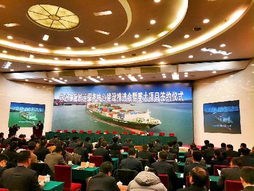 会上,省政府副秘书长、省海港委常务副主任夏海伟介绍舟山江海联运服务中心总体方案主要内容;新区党工委书记、管委会主任、市委书记周江勇,宁波市常务副市长陈奕君及省海港集团董事长毛建宏分别介绍舟山江海联运服务中心建设推进情况。会上,黄泽山油品贸易储运基地、宁波舟山港集疏运体系等项目总投资约1300亿元的20个舟山江海联运服务中心重大建设项目举行集中签约。