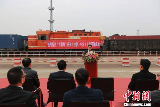中新网宁波1月4日电(记者 林波)伴随着悠长的汽笛声,首趟“西藏号”(拉萨-宁波)集装箱班列缓缓驶入浙江宁波。1月4日,“西藏号”班列接车仪式在宁波舟山港铁路北仑港站举行,“西藏号”35节车厢的所有货物完成接卸作业,标志着该班列首趟业务圆满完成。