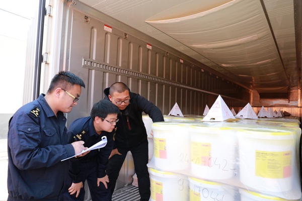 图为:关员们查验恒温箱中的货物 赵亚飞/摄