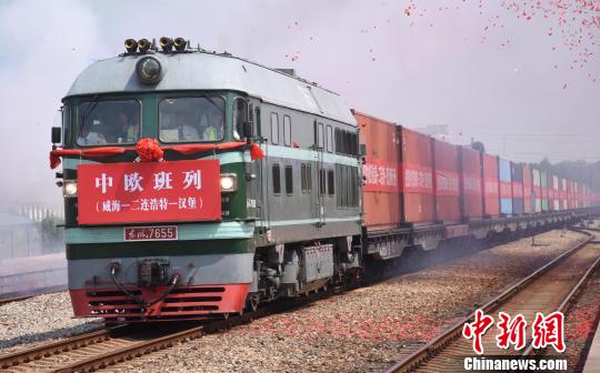 新开通的中欧班列威海至汉堡线路初期每周发运一班,经内蒙古二连浩特出境,途经蒙古国、俄罗斯、白俄罗斯、波兰,终到德国汉堡,全程约1.1万公里,运行时间为15至18天,比海运缩短10天以上,运费比空运节省八成。