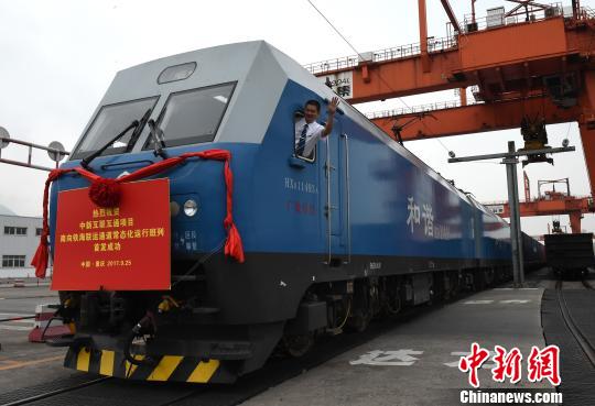 中新网重庆9月25日电 (记者 刘贤)25日在重庆铁路口岸,中共重庆市委书记陈敏尔宣布中新互联互通项目渝黔桂新南向铁海联运通道(简称“南向铁海联运通道”)常态化运行班列首发。