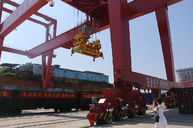 阳逻铁水联运国家示范工程集装箱突破8000标箱。 记者汪文汉 摄
