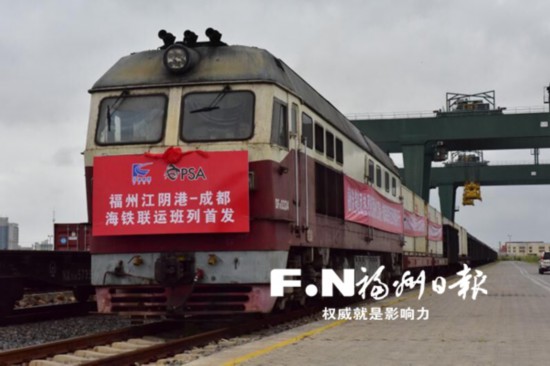 福州江阴港到成都海铁联运班列首发。