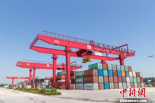 “江、海、铁”多式联运集装箱抵达白洋港。宜昌建投集团供图