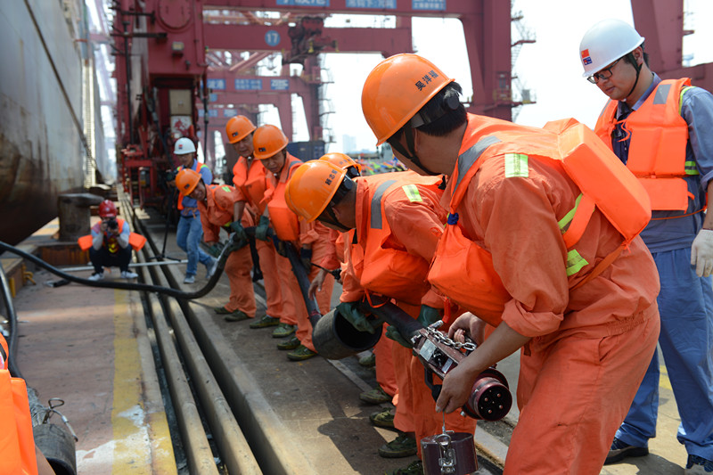 近日,载箱量10000标准箱的“中远高雄”轮顺利靠上北仑第二集装箱码头分公司4号泊位,该公司工程技术部变电所电工合力把船上的两条6.6千伏电缆接入码头前沿的高压岸电箱。这是宁波舟山港正式投用的第四套高压岸电系统。