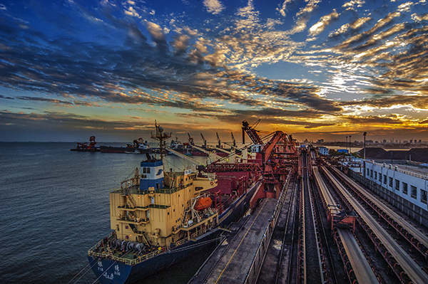 近日,在秦港股份第九港务分公司堆场,一台堆料机由东向西快速移动,当行至500米处上水点时,堆料机开始降速,缓慢向地面喷枪站旁的一根水管滑行,直至水管滑入堆料机的副水箱内,瞬间开始向副水箱内注水。副水箱通过潜水泵将除尘水向堆料机主水箱中转,供冬季环保设备“雾炮”使用。