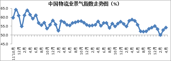 成本回落,价格回暖,企业效益有所改善。4月份,主营业务利润指数为52.2%,较上月回升1.5个百分点;物流服务价格指数回升1.3个百分点,为51.1%;主营业务成本指数回落2个百分点,为56%。反映出成本适度回落、价格逐步回暖,企业效益有所改善。