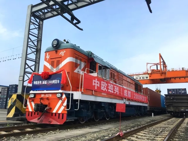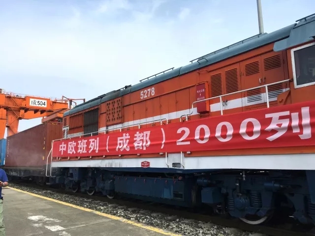 6月28日,中欧班列(成都)鸣笛启程,缓缓驶出成都国际铁路港,标志着中欧班列(成都)累计开行达2000列,成都成为国内首个实现中欧班列累计开行达2000列的城市。据悉,该班列装载液晶显示器、笔记本电脑等电子产品,发往荷兰蒂尔堡,预计14天左右到达。