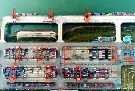 目前,我国对外开放已经从沿海到沿边、沿江、内陆地区由东及西渐次展开。果园港位于重庆两江新区,是国家发改委、交通部和重庆市重点打造的第三代现代化内河港口、国家级铁公水多式联运综合交通枢纽,是重庆规划布局的“1+3+9”的现代化港口群中的主枢纽港,是重庆建设长江上游航运中心的重要载体。新华网发伍北海 摄