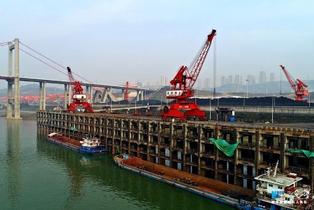 据了解,果园港占地约4平方公里,总投资约105亿元,设计年通过能力3000万吨,分为港口功能区、铁路功能区和仓储配套功能区。渝怀铁路在鱼嘴站引入进港铁路专线,将打造成长江上游地区内外贸集装箱中转中心、散杂货中转服务中心、汽车运输中转中心,为大西南地区经济发展提供综合运输服务。新华网发伍北海 摄