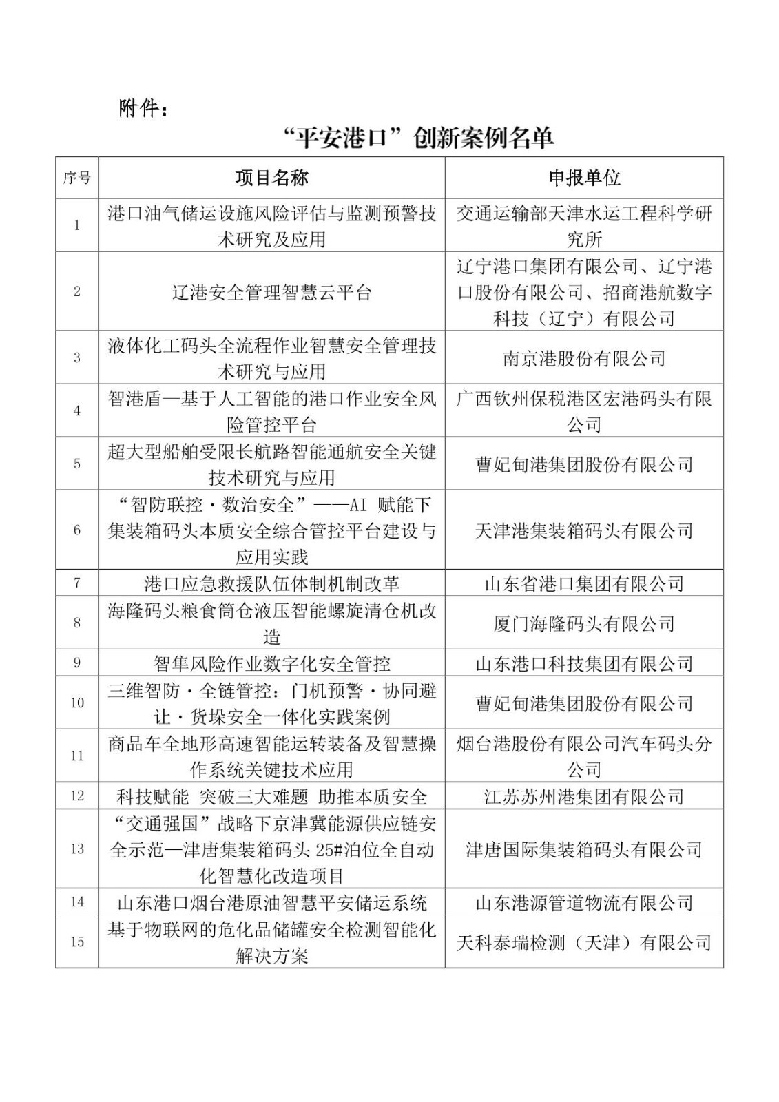 原文下载:关于公布“平安港口”创新案例征集评选结果的公告.pdf