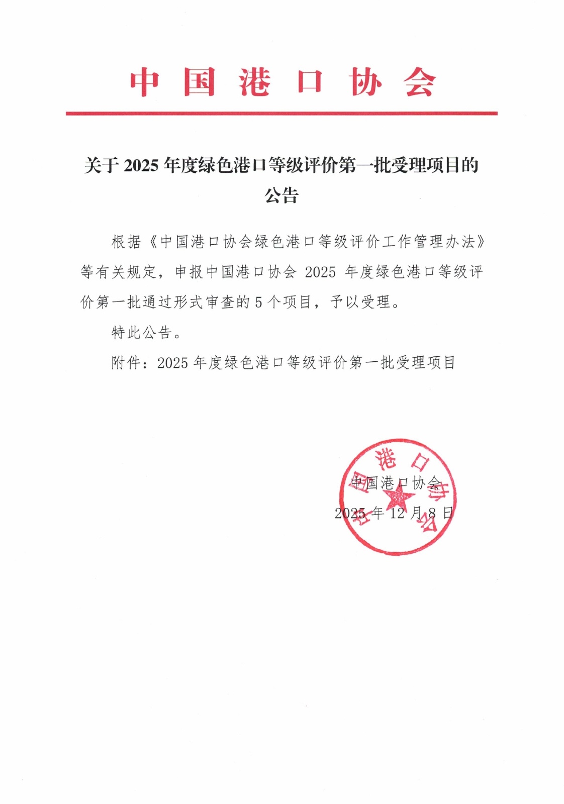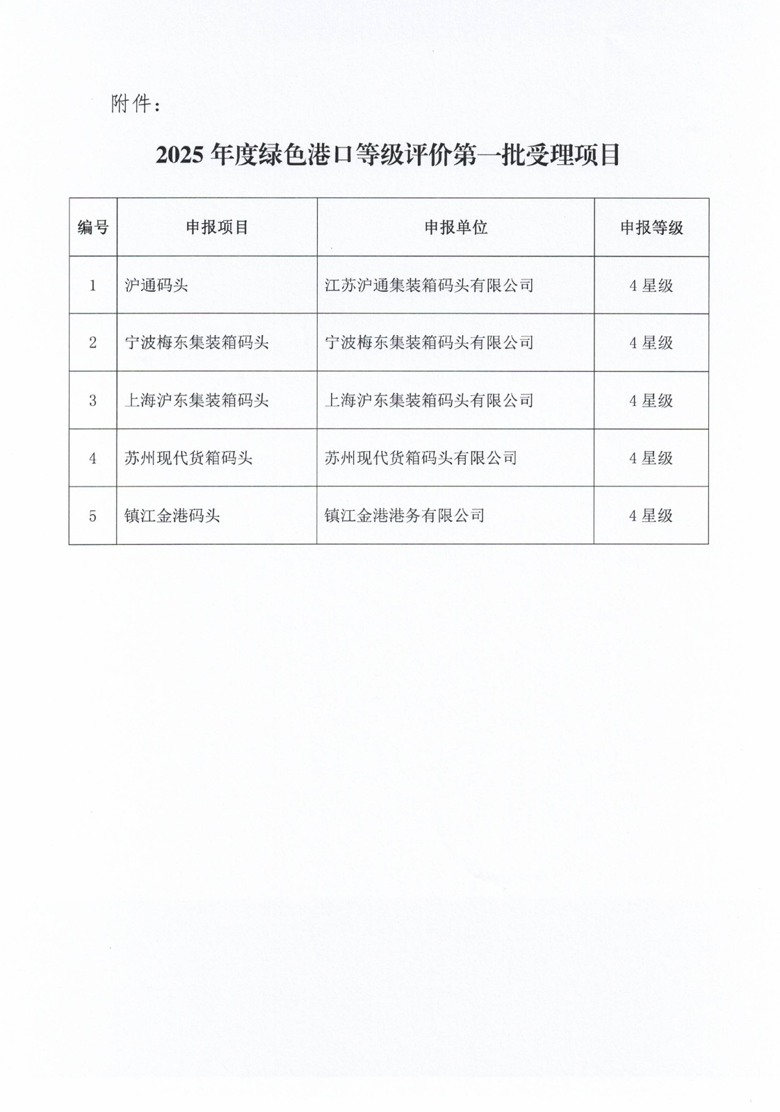 原文下载:关于2025年度绿色港口等级评价第一批受理项目的公告.pdf