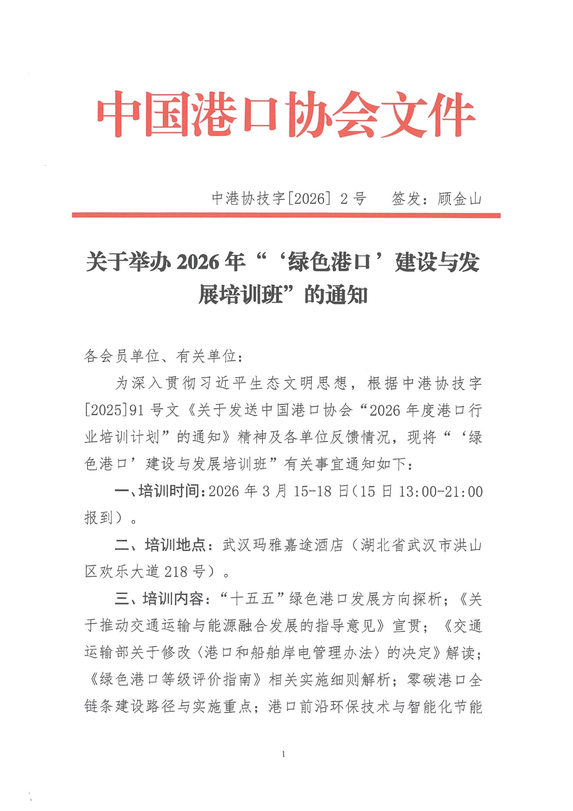 关于举办2026年“‘绿色港口’建设与发展培训班”的通知